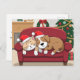 Gratulera till julglädjen med den här söta illustrationen av en katt och hund som tjallade på en mysigt soffa, båda med julhattar. Perfekt för att lägga till värme och charm i helgdagskorten och dekorationerna!