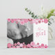 Söt i rosa bebisflicka födelse fotomeddelande inbjudningar