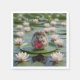 En söt igelkott som håller en hjärtformad rubin sitter på en grön näckroslöv i en damm full av rosa näckrosor.