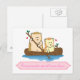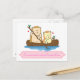 Söt igelkottpar som seglar på träbåt vykort