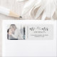 Söt falsk pergament Mr & Mrs svartvitt fotoklistermärke | Anpassat klistermärke för bröllagsgåvor.