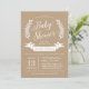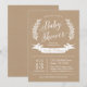 Chic Rustic babyduschinbjudan med elegant typografi i en vit botanisk andedräkt. Utformningen har en tryckt papper bakgrund för säckskraften som kommer att skrivas ut som en del av konstruktionen på alla pappra typer. Klicka på Anpassa om du vill ändra typsnitt och färg för att skapa en unik design av ett slag.
