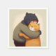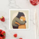 Kid kramar hans söta gingerkatt Napkins för Cat Cafe. Vänskap av barn och lustig illustration av tecknaden hos djur.
