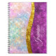 Gör skolstarten rolig med denna söta personliga anteckningsbok. Den är designad med elegant, flickaktig iriserande glitter i enhörningsregnbågens rosa fuchsia guld färger.