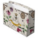 Presentera dina gåvor i stil med vår chic vintage-stil Large Gift Bag i elegant elfenben, personlig med mottagarens namn på både framsidan och baksidan. Presentpåsens framsida och baksida visar vår tidslånga drottning Bee Royal Guld Krona teckning i svart bläck. Handdragen av Nathalie Portet. I detta självklara mönster visas invecklade detaljer om en vanlig bidrottning och hennes royal guld krona, omgiven av charming blommigt inslag. Namn under drottningen i rullan vintage-stil Guld är anpassade. Vare sig det gäller Mors dag, födelsedagar, årsdagar, möhippor eller andra speciella evenemang, så kommer den här presentpåsen säkert att glädja dina kära.