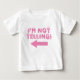 Söt t-shirt-design med texten "Jag berättar inte" i fet "krita"-bokstav. Strax under denna fras, i samma färg, finns en stor pil. Denna design finns i flera färger. Samma design med pilen som pekar i motsatt riktning finns också tillgänglig för köp. Perfekt för tvillingar!