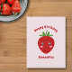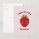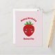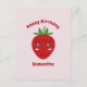 Ett rosa Glad Födelsedag Postkort med anpassningsbart meddelande och en söt jordgubbsillustration i Kawaii-stil. Skicka det på födelsedagen för din vän eller en familjemedlem!