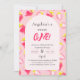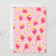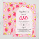 Den första födelsedagsinbjudan är dekorerad med ett fint sött jordgubbsmönster.