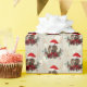 En liten design av den här juvelyga babygeten i en julhatt, med sina dekorerade renar med julklappar hängande från dem, och en krans av poinsettias - A © goatLady GetYerGoat™ original - på söt guld bokeh bakgrund - Bästa för små till medelstora storleka paket, är ungefär 3 tum för varje get -