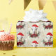 En liten formgivning av den här vackra babygeten LaMancha i en julhatt, med sina dekorerade renhållare med julklappar nedhängande från dem, och en krans av poinsettias - A © goatLady GetYerGoat™ original - på en söt guld bokeh-bakgrund - Bästa för små till medelstora storleka paket, är ungefär 3 tum för varje get -