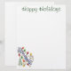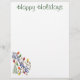 Gammalillustration tecknad glad jul högtidsdesign med ordet "Högtider" insvept i färgglada gula, röda och gröna julbelysningar. Omgiven av skinande gyllene stjärnor och ett julgran från skogen.