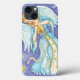 Gammal illustration religiös julbild som visar en flygande ängel som spelar musik medan den blåser i ett horn och är omgiven av ljusa gyllene stjärnor. En änglalik, vacker kvinna med gyllene blont hår som spelar ett musikinstrument.