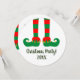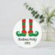Julbeställning runt jul-tomte festinbjudningar. Anpassade festinbjudningar för hemmet, barn, familj, vänner, kontor, företagsmöte eller företagsaktivitet. Personlig text och bakgrundsfärger. Cirkulär utskärningsform med söt tomte-fötter design i traditionella röda, vita och gröna färger. Enkel mall för inbjudan av vänner, partners, anställda, kollegor, medarbetare, personal, volontärer, chef, chefer, familj. Modern dubbelsidig mall för utskrift med elegant typsnitt. Kan också användas för familjesammanträff eller jul-sammanträff.