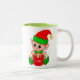 Söt jul-tomte med presentlåda & redigerbar text Två-Tonad mugg
