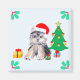 Söt jul-Yorkshire Terrier-valp på ljusblå bakgrundsmagnet. Perfekt för alla under jul- eller vintersäsongen. Texten kan anpassas.