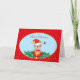 Söt julalf och fågel på ljust blått och rött julkort.