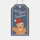 Den här märkrn för julklapp i roligt har en söt, biten pepparkaksgubbe med röd hatt, i en elegant blå. Du kan enkelt anpassa båda sidor av den här festliga presenttexten med din egen anpassningsbar märkre.