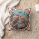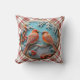 Söt julklappad fågelkudde/kudde Julcheck. Trendiget kontrollerade mönster. Jultartan. Julcheckens utformning med julstensfåglar och bär. Blå och röd.