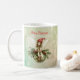 Söt julflicka på en prydnad kaffemugg