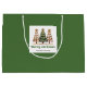 Minimalistisk vattenfärg julgran gåvpåse med lekfullt leopardmönster i jordnära grönt och guld. Personalisera med ditt eget namn för en stilren julgåva.