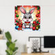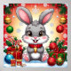Bedårande tecknad kanin sitter bland snö, prydnader och presenter och inger julstämning med levande färger och en festlig vintermiljö. Perfekt för säsongskort och juldesigns.