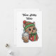 Söt kawaii julkattskort med en förtjusande festlig katt som bär en vinterhatt och håller en julpresent och iskaffe. Detta charmiga julkort är perfekt för kattälskare, kaffefanatiker och alla som njuter av söta säsongsbetonade mönster.