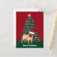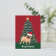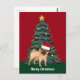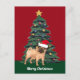 Detta vackra anpassade julkort har en söt mops som bär en tomteluva framför en vacker julgran dekorerad med färgglada prydnader. Perfekta julkort för djurägare med en bedårande hundillustration.