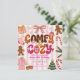 En söt och festlig julpyjamasparty flicka födelsedagsinbjudan med varma högtidsfärger, mysiga pyjamaselement och lekfulla julillustrationer. Perfekt för vinterfödelsedagar, denna glada design inkluderar julstrumpor, snöflingor, sockerrör och söta övernattningsdetaljer. Idealiskt för en magisk och minnesvärd julinspirerad födelsedagsfirande.