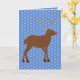 Det här fantastiska kortet har en grafisk designbild av en söt julren med en ljusblank röd näsa. Renarna är bruna och luddiga, hon har stora horn och mörkbruna hovar. Hennes öga är svart och hon har ett stort leende på sitt ansikte.