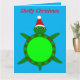 Detta roliga Halloween-kort har en söt julhavssköldpadda med grönt skal och 4 ben. Sköldpaddan bär en festlig röd och vit hatt. Den har söta svarta och vita ögon och en liten grön svans. Den yttre delen av skalet är dekorerad med omväxlande järnekblad och bär och vackra röda julstjärnor.