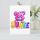 En livlig och bedårande rosa björn med stora ögon, som håller i en färgglad "JUNEEE"-skylt. Perfekt för barnteman, födelsedagskort eller roliga designs!