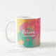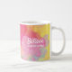 Glad, inspirerande morgoncitat, "Tro på gott kaffe!" Det här är en design med visdomsord för kaffefantaster överallt som söker den perfekta morgonbryggan. Designen har en färgrik abstrakt blomster vattenfärgsbakgrund i pastelltoner av rosa, gul och turkos. Typsnittet är ljust vitt. Färgen på typsnittet kan enkelt anpassas i Zazzles designverktyg. Andra designer finns tillgängliga.