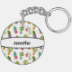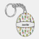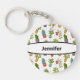 En nyckelring med ett sött och roligt mönster. Illustrationer av olika kaktus, sittande i blomkrukor med tecknade glada leende ansikten.