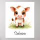 Förgylla ditt lilla barns barnkammare med denna underbara personliga affisch med en charmig babyko med stora bruna ögon och rosiga kinder. Stående i en äng med mjuk grönska och vilda blommor, ger denna vänliga kalv en söt och lekfull touch till alla bondgårds- eller lanthusstilade barnkammare. Gör den extra speciell genom att anpassa den med ditt barns namn längst ner - perfekt som en hjärtlig babyshow-gåva eller för att dekorera ett mysigt barnkammare.