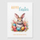 Söt Kanin Färgglada Ägg Blommor Glad Påsk Semester Magnet Kort. Ett pastellfärgat Påsk-kort med en söt kanin-illustration omgiven av dekorerade ägg och blommor. Kaninen har en mjuk, akvarell-liknande framtoning med ett vänligt, leende ansikte.