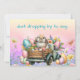 Söt kanin i blomma och äggfylld lastbil påsk julkort