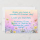 Det här vackra, färgglada påskkortet visar den söta lilla kaninen som sitter längst bak i en gammal lastbil. Lastbilen är fylld med färgade påskägg och blommor och kör genom en äng med vilda blommor. Baksidan av kortet visar också en äng med vilda blommor som vajar i vinden och det finns färgglada påskägg bland blommorna. Det här kortet skulle vara perfekt för vem som helst, från barn till vuxna.