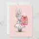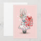 En bedårande illustrerad kanin i en blomsterklänning erbjuder en present med körsbärsmönster på en pastellrosa bakgrund, symboliserar kärlek, gåvor och glädjefull firande. Perfekt för Alla hjärtans dag, vår och gratulationskort.