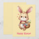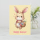 Fira påsk och sprid kärlek till dina nära och kära med detta söta kanin med korg och schal firandekort. Detta förtjusande kort kommer att värma deras hjärtan och förmedla din kärlek, uppskattning och vänlighet. Det gula bakgrunden på kortet påminner oss om positiva och glada händelser, och påsk är det perfekta tillfället att visa vår tillgivenhet och omsorg mot våra nära och kära.