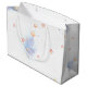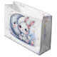 Toppen söt presentväska med söt, vit, liten bunny med vacker rosa sitta nära ett halvmånsande silver måne med några guld fallande stjärnor.