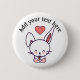 Anpassa detta roliga märke genom att använda mallen för att lägga till din egen text. En söt vit tecknad kanin kanin med ett rosa kärlekshjärta ovanför huvudet och som håller en liten orange morot.