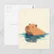 Söt Kapybara Flytande i Blått Vatten Vykort