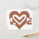 En grafisk logotypdesign, specialdesignad. KÄRLEK i chokladbrun.