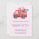 Alla hjärtans dags-inbjudan med en söt röd akvarell-lastbil. Bär hjärtan och blommor baktill. 'Jag älskar dig' skrivet på sidan. Whimsisk och bedårande.