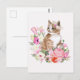 Söt katt av vattenfärgad blommigt vykort