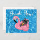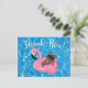 Denna grå katt som bär solglasögon rider på en rosa flamingo flytdyna och dricker en tropisk ananasdryck medan den flyter runt i den uppfriskande blå poolen. Den moderna mörkgrå texten är helt anpassningsbar och kan vara ett bra tillägg till din födelsedagsfest eller om du bara vill ha en bra sommarlook för dina tack-kort.