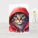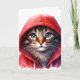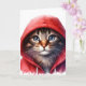 Söt katt i röd hoodie Vattenfärgskort Kort