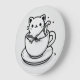 Tillägg charm och personlighet till ditt utrymme med denna söta katt i tekopp-väggklocka. Med en söt, handritad stilvalp som passar inuti en mysig kopp, smälter denna svart-vita illustration lekfullt infall med ren minimalistisk design.