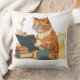 Söt katt mamma som läser bok och dricker kaffe kudde