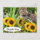 Detta vykort har en av mina kattbilder och överlägg av illustrerade solrosor. Köp som visat eller ladda upp en av dina egna bilder. På baksidan har jag lagt till en sektion för din adress, mottagarens adress och en sektion för din tacksamhetstext.